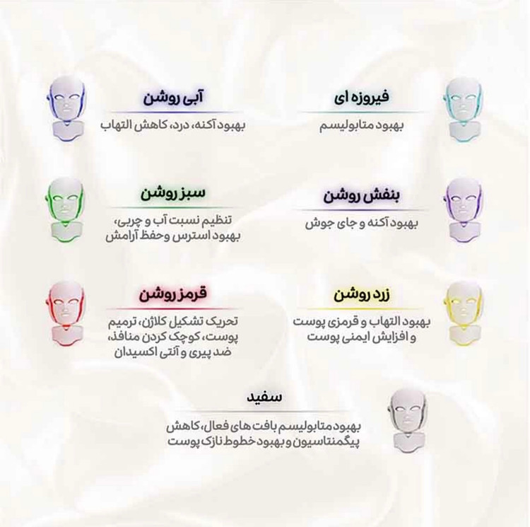ماسک LED هفت رنگ فوتون تراپی با گردنی جداشونده - جوانسازی، درمان آکنه و لیفت صورت و گردن